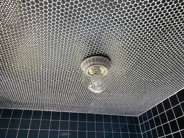 これも結構珍しい?タイル貼りの天井でした。剥がれ落ちる不安もありますね…。