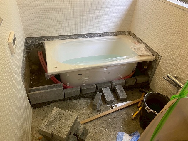 新しい浴槽を据え付けます。