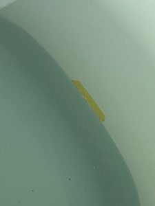 浴槽に水を張り一晩経過。貼っていたテープの水位に変化がなく無事、水漏れナシ!