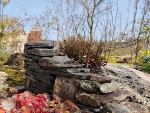 穏やかなコッツウォルズの風景を感じられる薄い鉄平石の小端(こば)積みで制作しています。