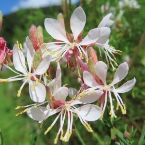 漢字で書くと「白蝶草」で5月から11月にかけてまるで白い蝶が飛んで舞うような美しい姿の花を咲かせます。