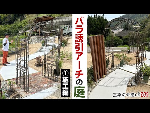 和洋折衷!広々バラ園施工編。アーチとグリ石積み花台にご注目